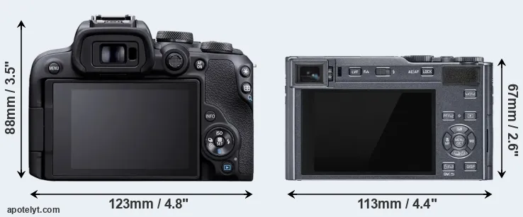 | 7. | Canon R50 | 116 mm | 86 mm | 69 mm | 375 g | 230 | n | Feb 2023 | US$ 679 | amazon.com | |