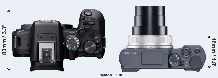 The above size and weight comparisons are to some extent incomplete and possibly misleading, as the C-LUX has a lens built in, whereas the R10 is an interchangeable lens camera that requires a separate lens. Attaching the latter will add extra weight and bulk to the setup.