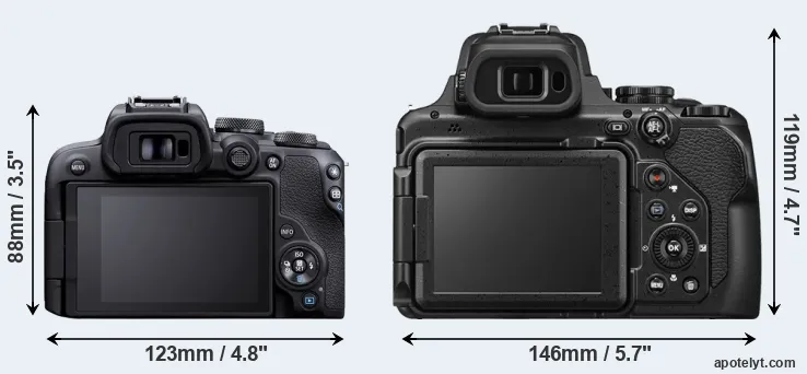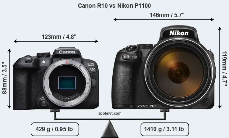 | Body Specs | Canon R10 | Nikon P1100 |