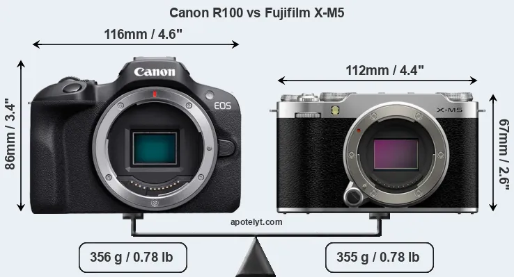 | Body Specs | Canon R100 | Fujifilm X-M5 |