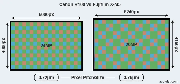 | Sensor Specs | Canon R100 | Fujifilm X-M5 |