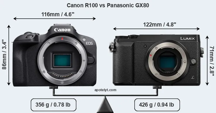 | Body Specs | Canon R100 | Panasonic GX80 |