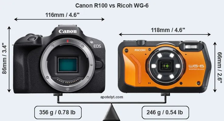 | Body Specs | Canon R100 | Ricoh WG-6 |