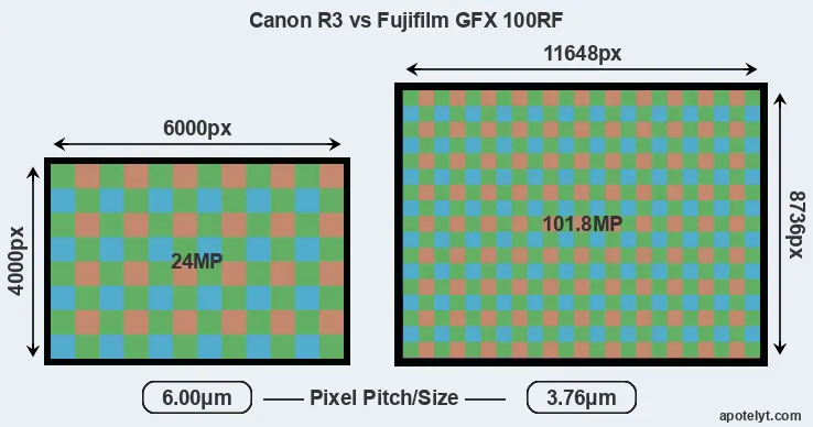 | Sensor Specs | Canon R3 | Fujifilm GFX 100RF |