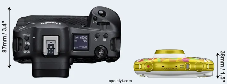 The Canon EOS R3 and the Nikon Coolpix W150 are two digital cameras that were officially introduced, respectively, in September 2021 and April 2019. The R3 is a mirrorless interchangeable lens camera, while the W150 is a fixed lens compact. The cameras are based on a full frame (R3) and a 1/3.1-inch (W150) sensor. The Canon has a resolution of 24 megapixels, whereas the Nikon provides 13 MP.