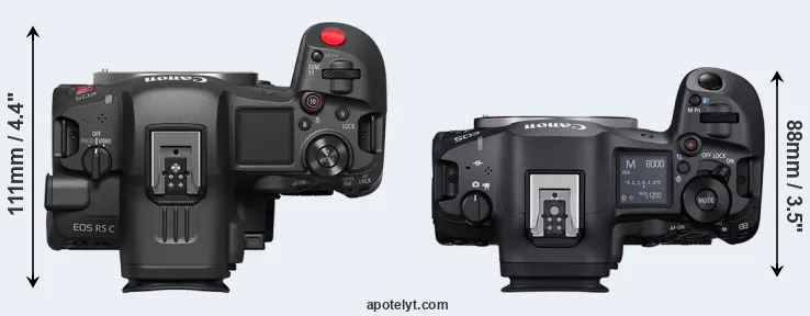 | 1. | Canon R5 C | 142 mm | 101 mm | 111 mm | 770 g | 320 | Y | Jan 2022 | US$ 4 499 | amazon.com | |