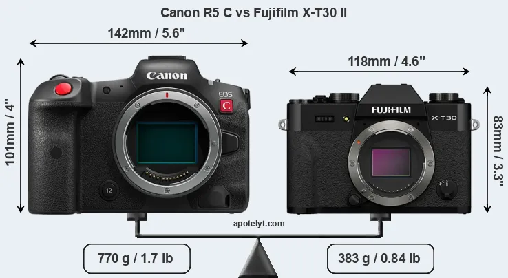 Size Canon R5 C vs Fujifilm X-T30 II
