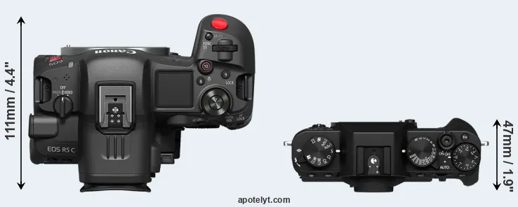 Compare R5 C versus X-T30 II top