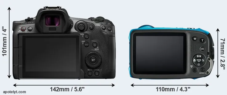 | Body Specs | Canon R5 C | Fujifilm XP130 |