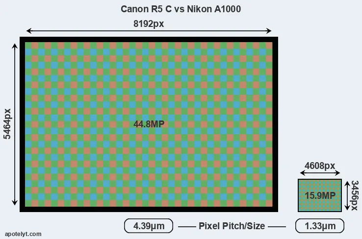 | Sensor Specs | Canon R5 C | Nikon A1000 |