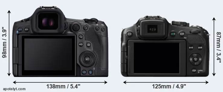 The above size and weight comparisons are to some extent incomplete and possibly misleading, as the FZ200 has a lens built in, whereas the R5 Mark II is an interchangeable lens camera that requires a separate lens. Attaching the latter will add extra weight and bulk to the setup.