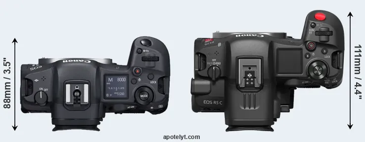 | 2. | Canon R5 C | 142 mm | 101 mm | 111 mm | 770 g | 320 | Y | Jan 2022 | US$ 4 499 | amazon.com | |