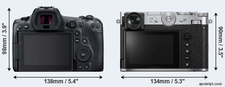The above size and weight comparisons are to some extent incomplete and possibly misleading, as the GFX 100RF has a lens built in, whereas the R5 is an interchangeable lens camera that requires a separate lens. Attaching the latter will add extra weight and bulk to the setup.