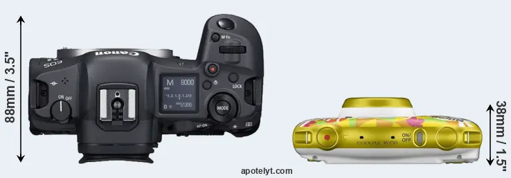 The above size and weight comparisons are to some extent incomplete and possibly misleading, as the W150 has a lens built in, whereas the R5 is an interchangeable lens camera that requires a separate lens. Attaching the latter will add extra weight and bulk to the setup.