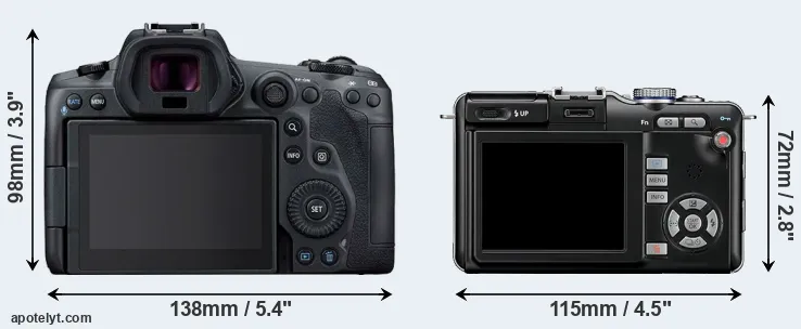 | Body Specs | Canon R5 | Olympus E-PL1 |