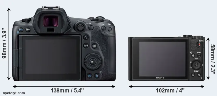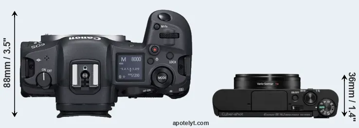 The above size and weight comparisons are to some extent incomplete and possibly misleading, as the WX800 has a lens built in, whereas the R5 is an interchangeable lens camera that requires a separate lens. Attaching the latter will add extra weight and bulk to the setup.