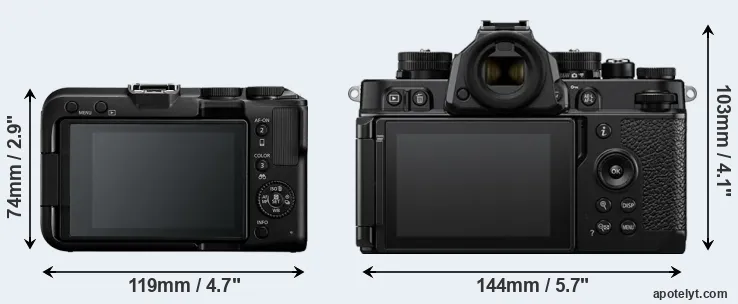| 2. | Nikon Zf | 144 mm | 103 mm | 49 mm | 710 g | 380 | Y | Sep 2023 | US$ 1 999 | amazon.com | |