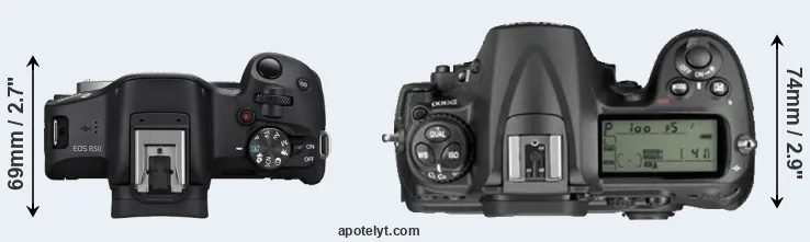 Going beyond this snapshot of core features and characteristics, what are the differences between the Canon EOS R50 and the Nikon D300? Which one should you buy? Read on to find out how these two cameras compare with respect to their body size, their imaging sensors, their shooting features, their input-output connections, and their reception by expert reviewers.
