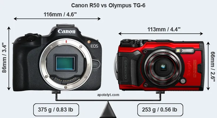 | Body Specs | Canon R50 | Olympus TG-6 |