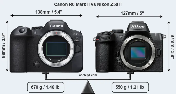 | Body Specs | Canon R6 Mark II | Nikon Z50 II |