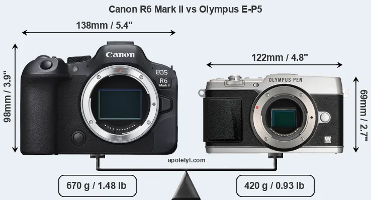 | Body Specs | Canon R6 Mark II | Olympus E-P5 |