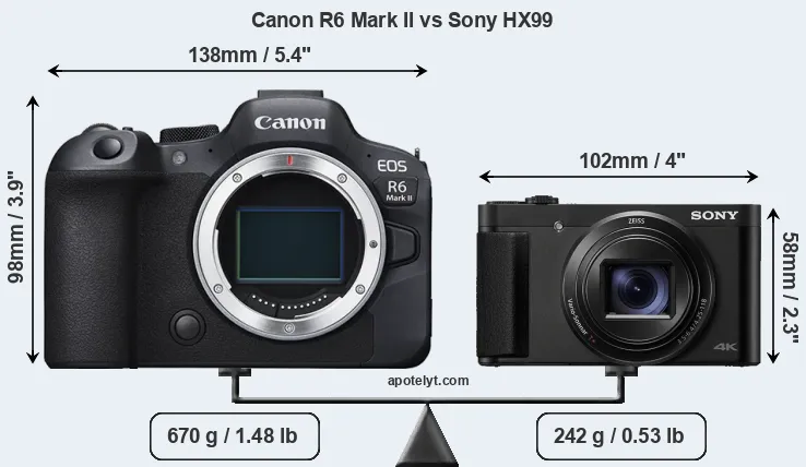 | Body Specs | Canon R6 Mark II | Sony HX99 |
