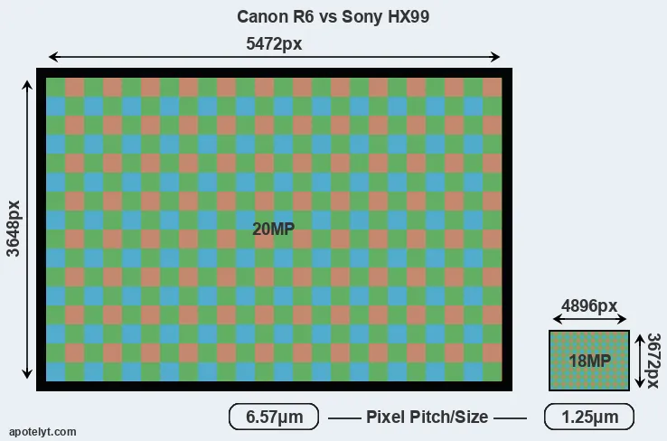 | Sensor Specs | Canon R6 | Sony HX99 |