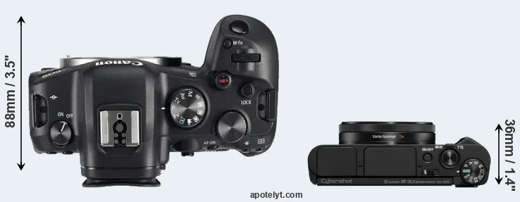 The above size and weight comparisons are to some extent incomplete and possibly misleading, as the HX99 has a lens built in, whereas the R6 is an interchangeable lens camera that requires a separate lens. Attaching the latter will add extra weight and bulk to the setup.