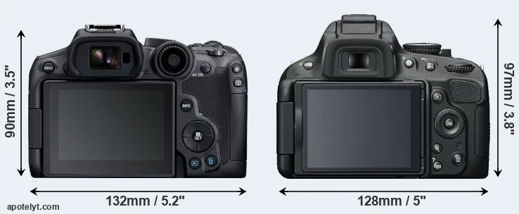 Going beyond this snapshot of core features and characteristics, what are the differences between the Canon EOS R7 and the Nikon D5100? Which one should you buy? Read on to find out how these two cameras compare with respect to their body size, their imaging sensors, their shooting features, their input-output connections, and their reception by expert reviewers.
