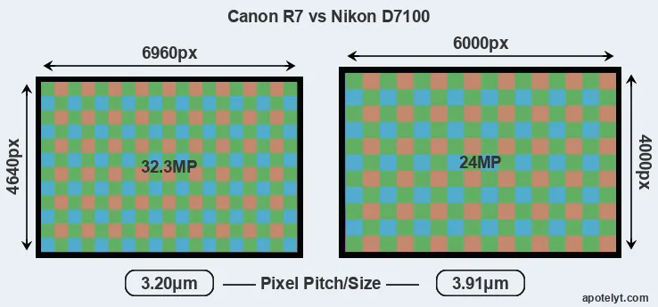| Sensor Specs | Canon R7 | Nikon D7100 |