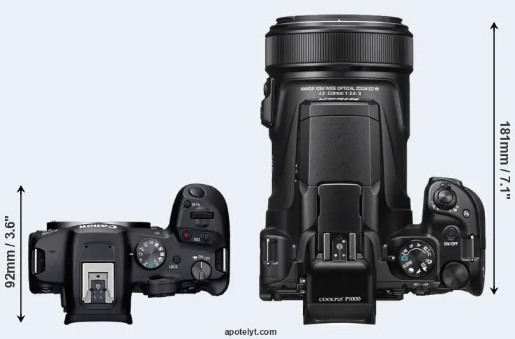 The above size and weight comparisons are to some extent incomplete and possibly misleading, as the P1000 has a lens built in, whereas the R7 is an interchangeable lens camera that requires a separate lens. Attaching the latter will add extra weight and bulk to the setup.