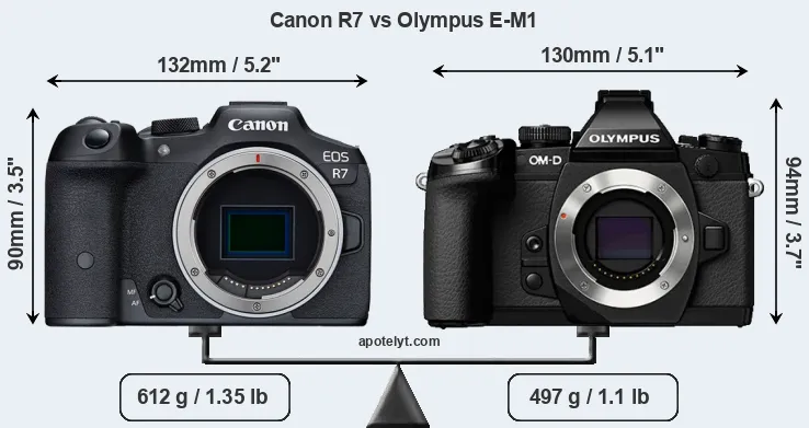 | Body Specs | Canon R7 | Olympus E-M1 |