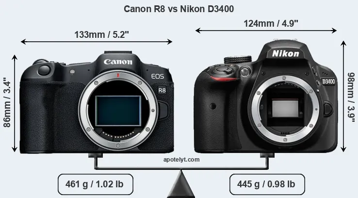 | Body Specs | Canon R8 | Nikon D3400 |