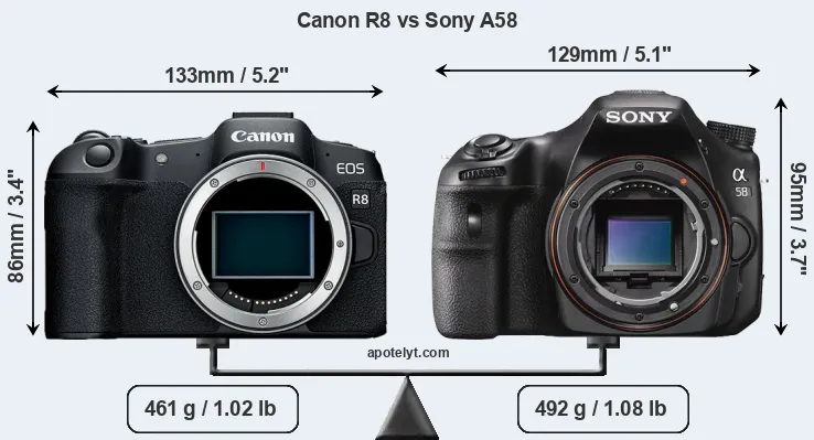 | Body Specs | Canon R8 | Sony A58 |