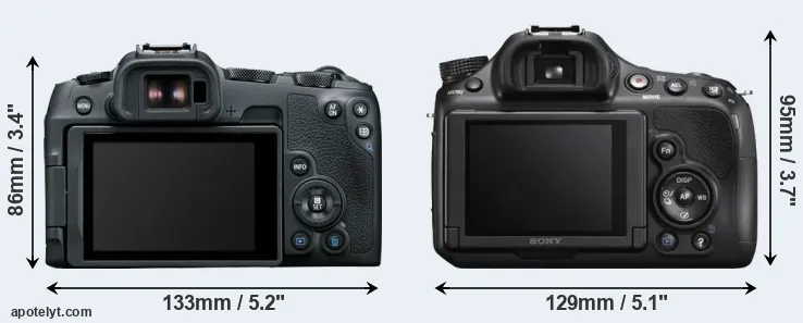 Going beyond this snapshot of core features and characteristics, what are the differences between the Canon EOS R8 and the Sony Alpha SLT-A58? Which one should you buy? Read on to find out how these two cameras compare with respect to their body size, their imaging sensors, their shooting features, their input-output connections, and their reception by expert reviewers.