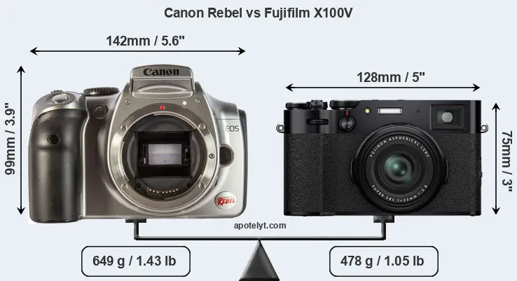| Body Specs | Canon Rebel | Fujifilm X100V |