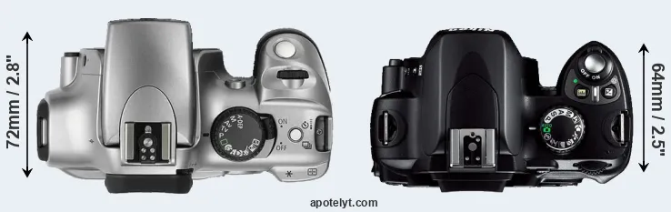 | 11. | Canon XTi | 127 mm | 84 mm | 65 mm | 556 g | 370 | n | Aug 2006 | US$ 799 | ebay.com | |