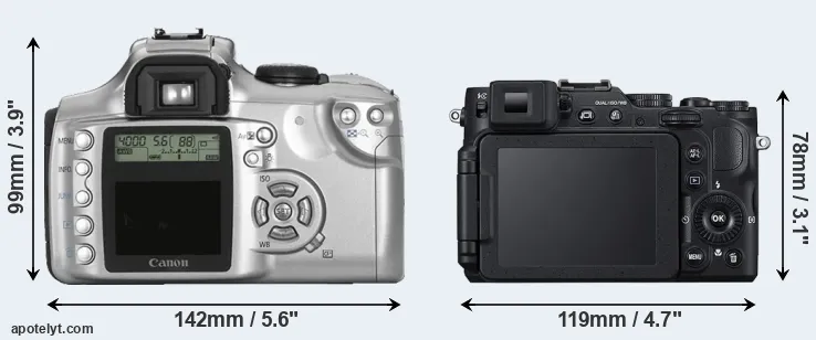 | 13. | Canon XTi | 127 mm | 84 mm | 65 mm | 556 g | 370 | n | Aug 2006 | US$ 799 | ebay.com | |