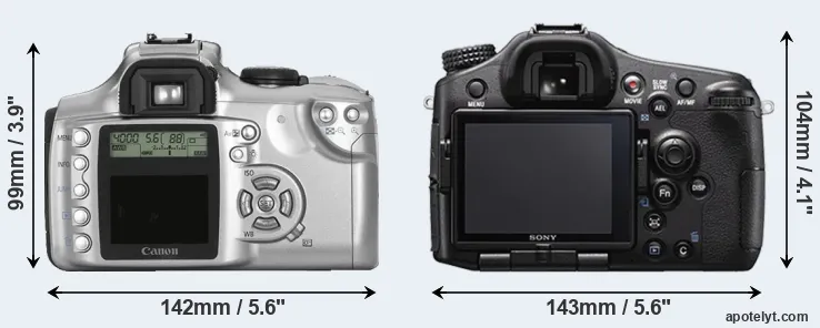 Going beyond this snapshot of core features and characteristics, what are the differences between the Canon EOS Digital Rebel and the Sony Alpha SLT-A77 II? Which one should you buy? Read on to find out how these two cameras compare with respect to their body size, their imaging sensors, their shooting features, their input-output connections, and their reception by expert reviewers.