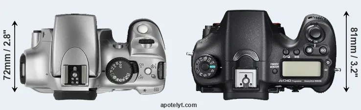 | 11. | Canon XTi | 127 mm | 84 mm | 65 mm | 556 g | 370 | n | Aug 2006 | US$ 799 | ebay.com | |