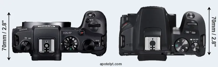 The Canon EOS RP and the Canon EOS Rebel SL3 (labelled Canon 250D in some countries) are two digital cameras that were officially introduced, respectively, in February 2019 and April 2019. The RP is a mirrorless interchangeable lens camera, while the SL3 is a DSLR. The cameras are based on a full frame (RP) and an APS-C (SL3) sensor. The RP has a resolution of 26 megapixels, whereas the SL3 provides 24 MP.