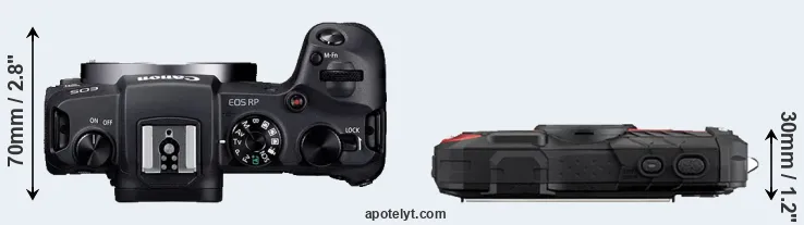 The above size and weight comparisons are to some extent incomplete and possibly misleading, as the WG-60 has a lens built in, whereas the RP is an interchangeable lens camera that requires a separate lens. Attaching the latter will add extra weight and bulk to the setup.
