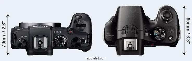 | 1. | Canon RP | 133 mm | 85 mm | 70 mm | 485 g | 250 | n | Feb 2019 | EUR 1 499 | amazon.com | |
