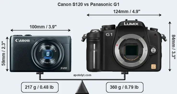 If the front view area (width x height) of the cameras is taken as an aggregate measure of their size, the Panasonic G1 is considerably larger (77 percent) than the Canon S120. In this context, it is worth noting that neither the S120 nor the G1 are weather-sealed.