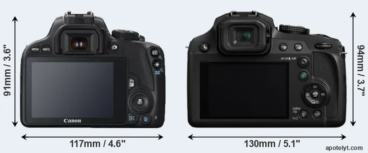 The Canon EOS Rebel SL1 (called Canon 100D in some regions) and the Panasonic Lumix DC-FZ80 (labelled Panasonic FZ82 in some countries) are two digital cameras that were officially introduced, respectively, in March 2013 and January 2017. The SL1 is a DSLR, while the FZ80 is a fixed lens compact. The cameras are based on an APS-C (SL1) and a 1/2.3-inch (FZ80) sensor. The Canon has a resolution of 17.9 megapixels, whereas the Panasonic provides 18 MP.
