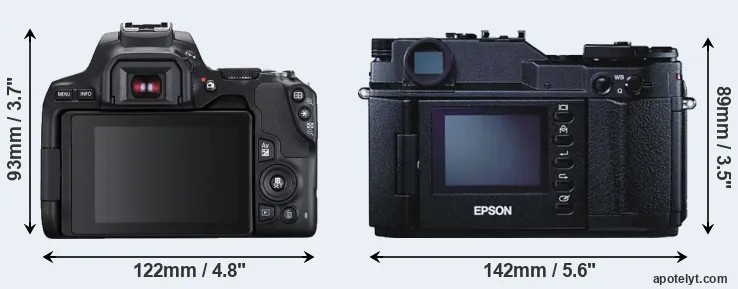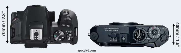 Going beyond this snapshot of core features and characteristics, what are the differences between the Canon EOS Rebel SL3 and the Epson R-D1? Which one should you buy? Read on to find out how these two cameras compare with respect to their body size, their imaging sensors, their shooting features, their input-output connections, and their reception by expert reviewers.