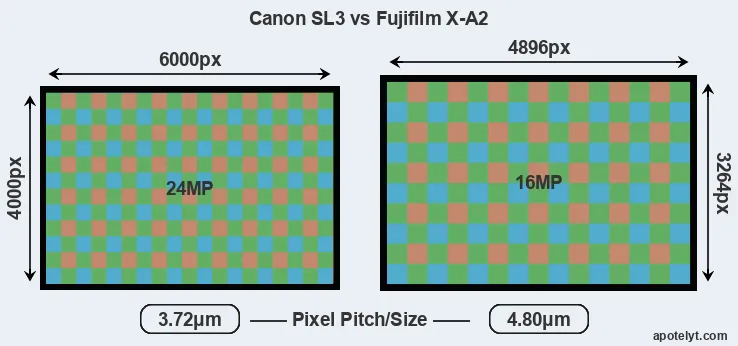 | Sensor Specs | Canon SL3 | Fujifilm X-A2 |