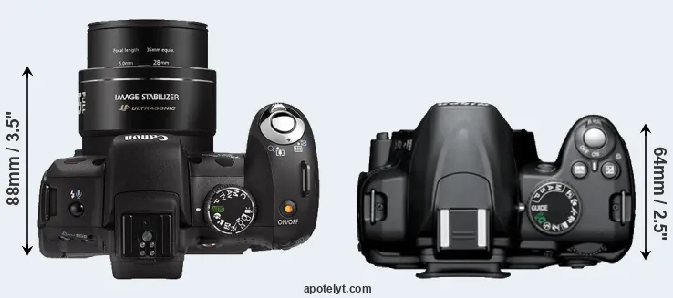 | 1. | Canon SX1 | 128 mm | 88 mm | 88 mm | 615 g | .. | n | Sep 2008 | US$ 599 | ebay.com | |
