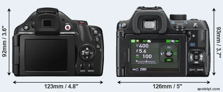 | Body Specs | Canon SX40 | Pentax K-70 |