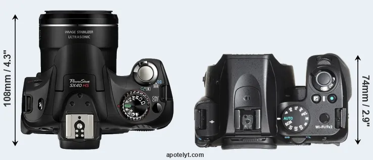 The above size and weight comparisons are to some extent incomplete and possibly misleading, as the SX40 has a lens built in, whereas the K-70 is an interchangeable lens camera that requires a separate lens. Attaching the latter will add extra weight and bulk to the setup.